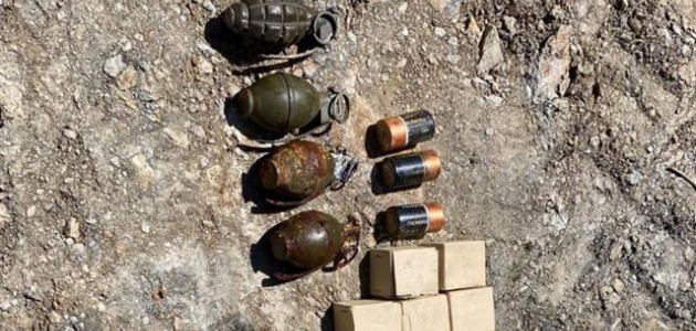 Operasyonda toprağa gömülü brandaya sarılı 4 el bombası, 240 fişek, 3 büyük pil, leşker kıyafeti ve puşi ele geçirildi.