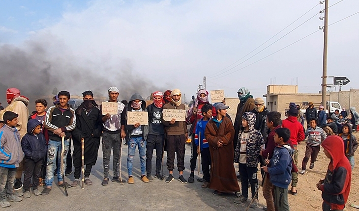 Örgüt işgalindeki bölgelerde kötüleşen yaşam şartlarını protesto eden göstericiler, PKK/YPG'nin sivilleri keyfi alıkoymaya son vermesini isteyerek lastik yaktı.