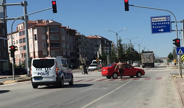 Konya'nın Kulu ilçesinde ters yönden giderken karşısında polisi gören sürücü, geri vitese aldığı aracıyla kaçmak isterken yakalandı.