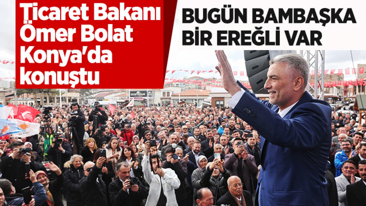 Ticaret Bakanı Ömer Bolat, Konya'nın Ereğli ilçesinde düzenlenen Tarihi Kent Meydanı Cephe İyileştirme ve Millet Bahçesi Açılış Töreni'nde konuştu. Bakan Bolat, "Bugün bambaşka bir Ereğli var. Daha şehre varmadan sanayiler, yatırımlar, yenilenen evler, değiştirilen araçlar, belediyecilik hizmetleri, yollar, parklar ve işte millet bahçesi. Ereğli'de 200 bin metrekarelik millet bahçesi. Hayırlı uğurlu olsun" dedi.