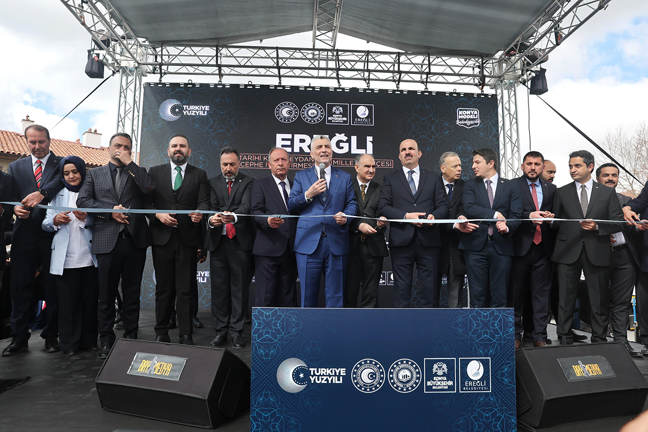 Bolat, Konya'nın Ereğli ilçesinde düzenlenen Tarihi Kent Meydanı Cephe İyileştirme ve Millet Bahçesi Açılış Töreni'nde, memleketinde hemşehrileriyle bir araya geldiği için mutlu olduğunu ifade etti.