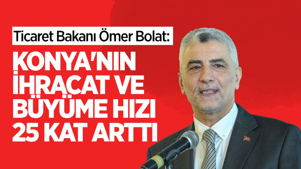 Konyalı Sanayici ve İş Adamları Derneğinin (KONSİAD) düzenlediği istişare toplantısında konuşan Ticaret Bakanı Ömer Bolat, "OSB'leriyle, ihracat gücüyle Konya'nın büyümesi hızlı şekilde devam ediyor. Ticaret Bakanlığı olarak dış ticareti de yönetiyoruz. Bu noktada Konya'nın ihracat ve büyüme hızı 25 kat arttı" dedi.