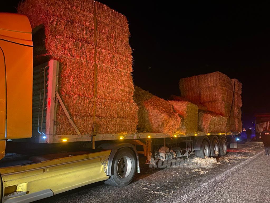 Afyonkarahisar'ın Dinar ilçesinde tırın dorsesinden yola düşen saman balyalarına çarpan kamyonet ile otomobildeki 2'si çocuk 6 kişi yaralandı.