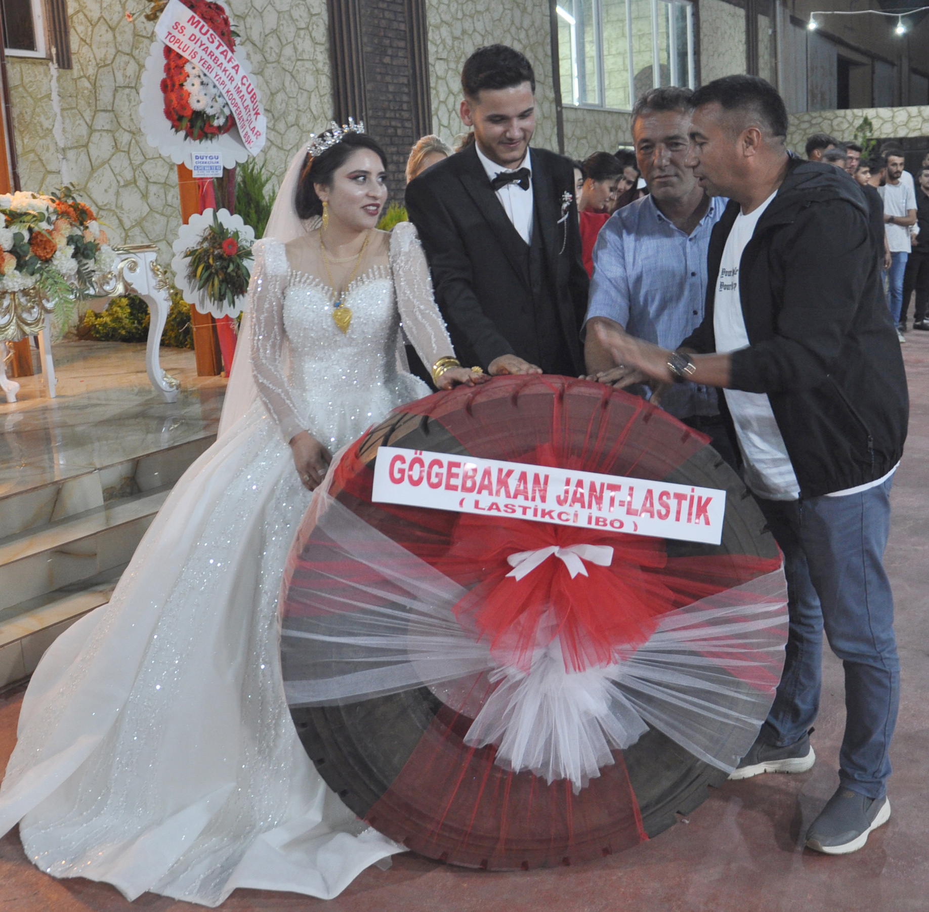 Gaziantep'in İslahiye ilçesinde, TIR şoförü Alican Yıldırım’ın (25) düğününde, arkadaşı tarafından piyasa değeri 15 bin TL olan TIR lastiği hediye edildi.