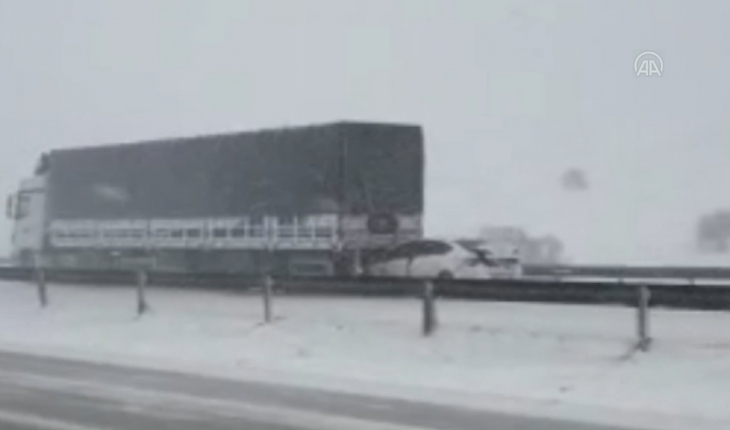 Konya-Afyonkarahisar kara yolunun 15. kilometresinde kar yağışı ve tipi nedeniyle kontrolden çıkan otomobil aynı yönde seyreden tıra arkadan çarptı.
