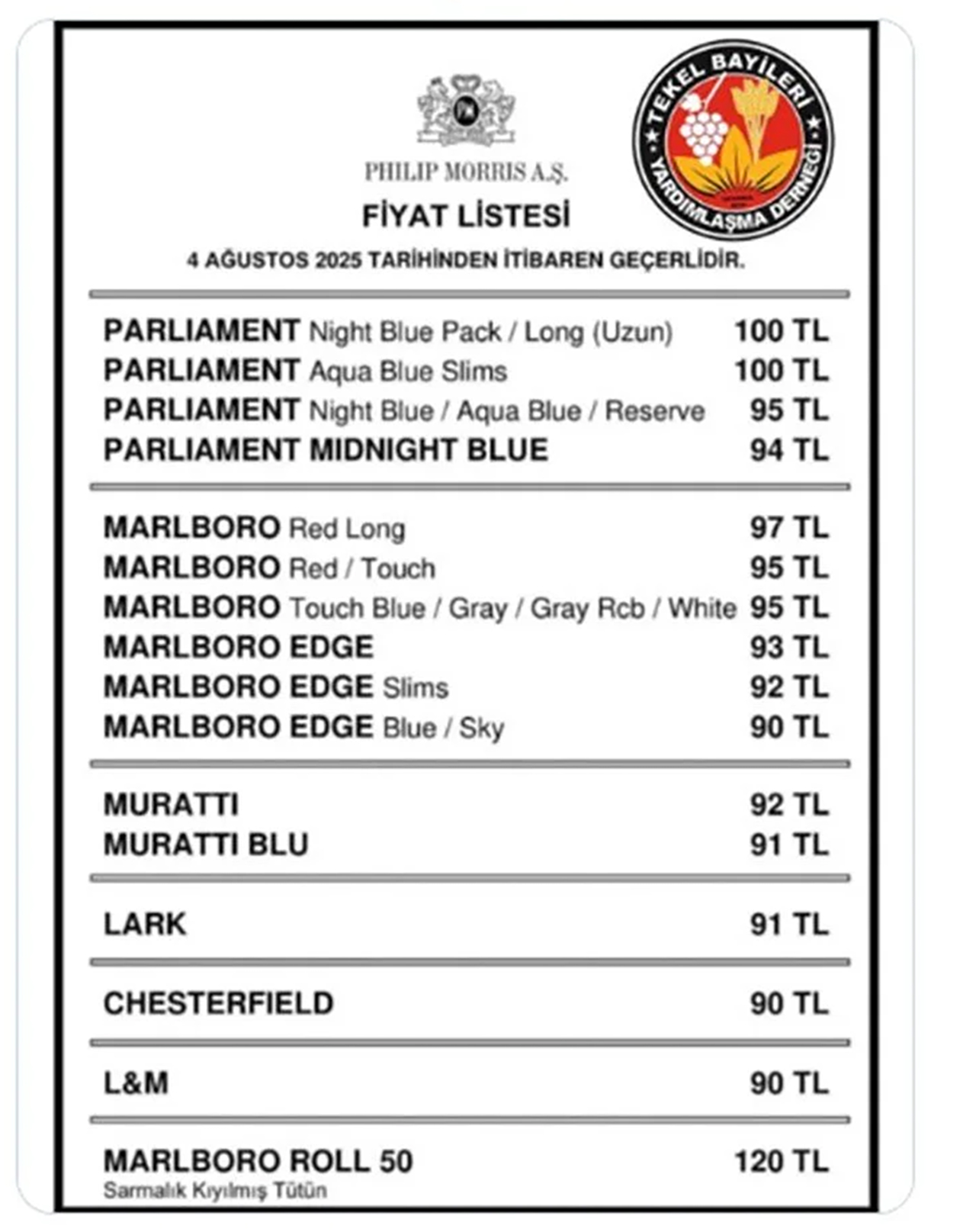 PHİLİP MORRİS SİGARA GRUBU FİYATLARI NE KADAR OLDU?
