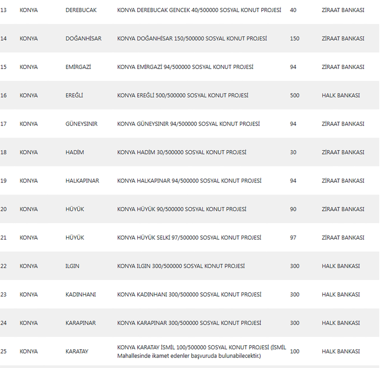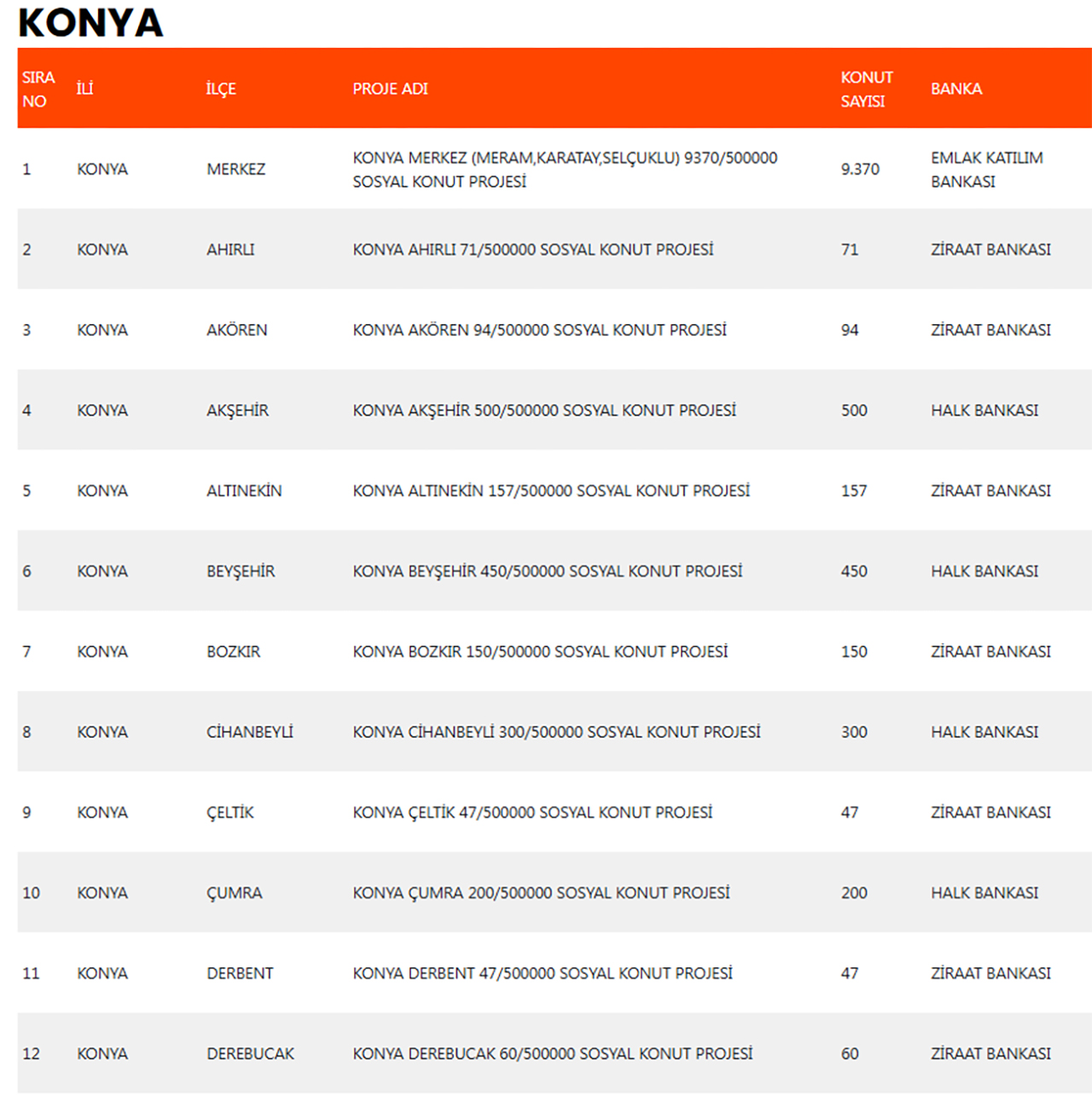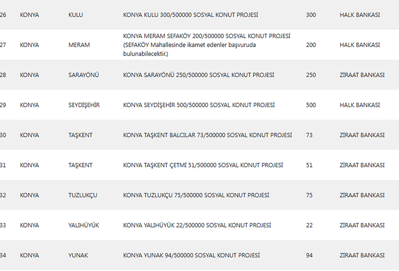 KONYA 500 BİN SOSYAL KONUTLARININ YER ALDIĞI İLÇELER