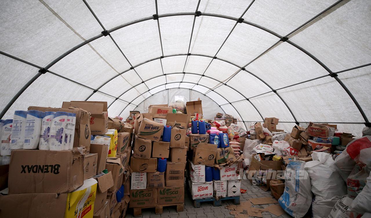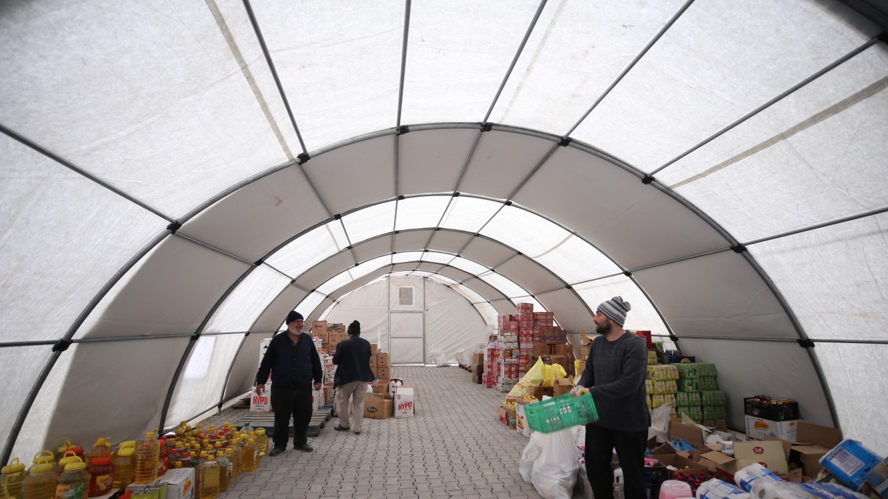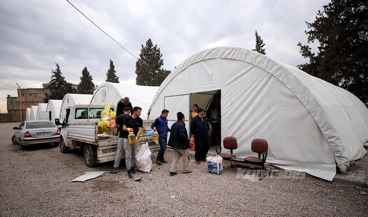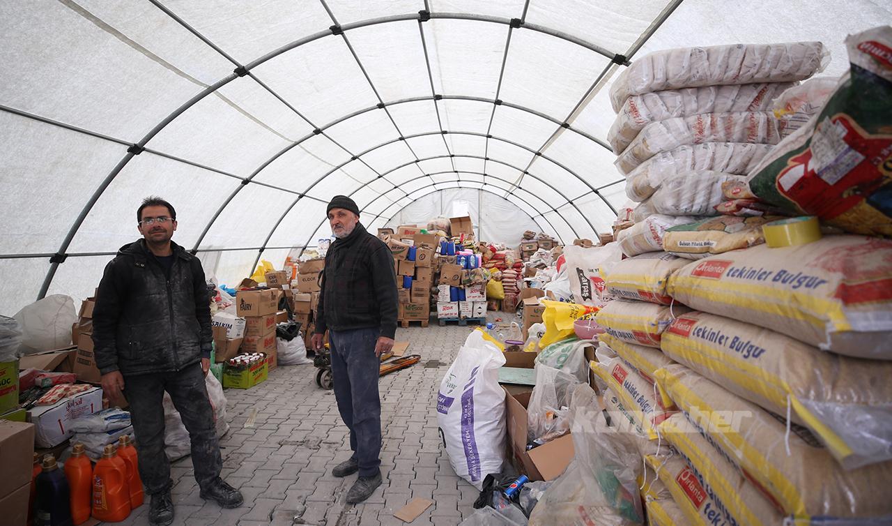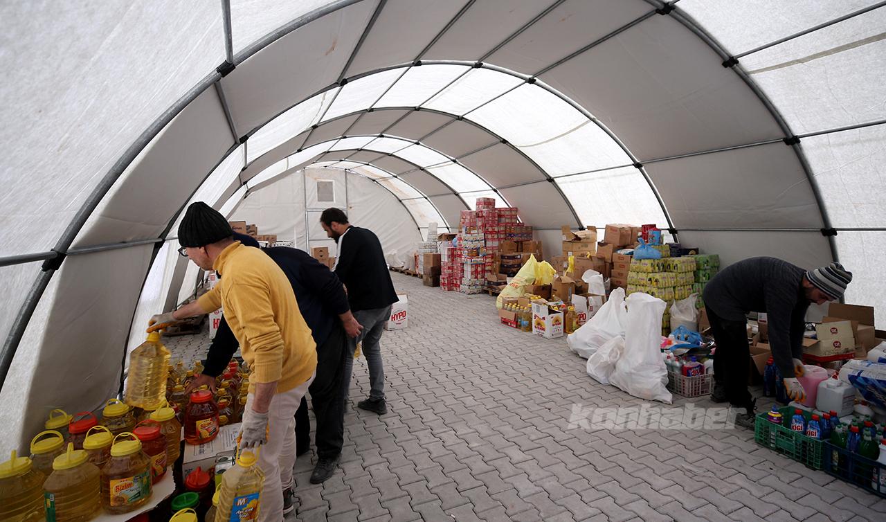 Kahramanmaraş'ta yıkılan kuru gıda toptancılar sitesi, Mehmetçik tarafından kurulan 28 çadırda hizmet vermeye başladı.