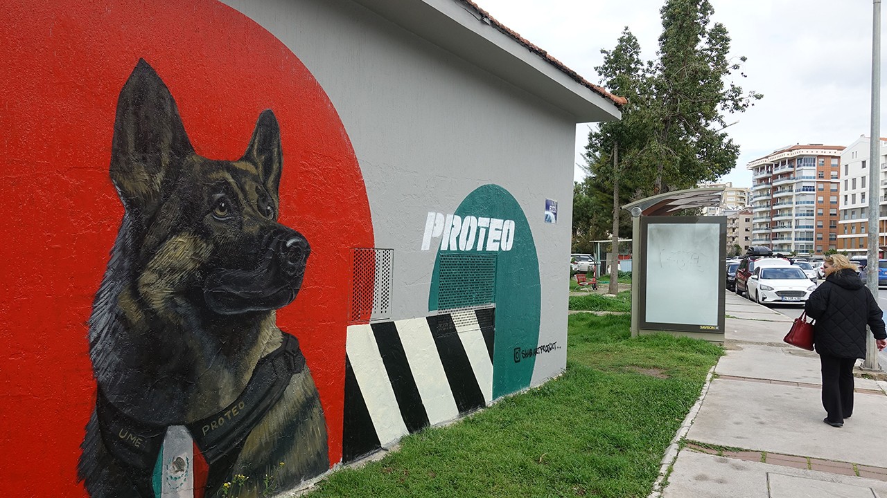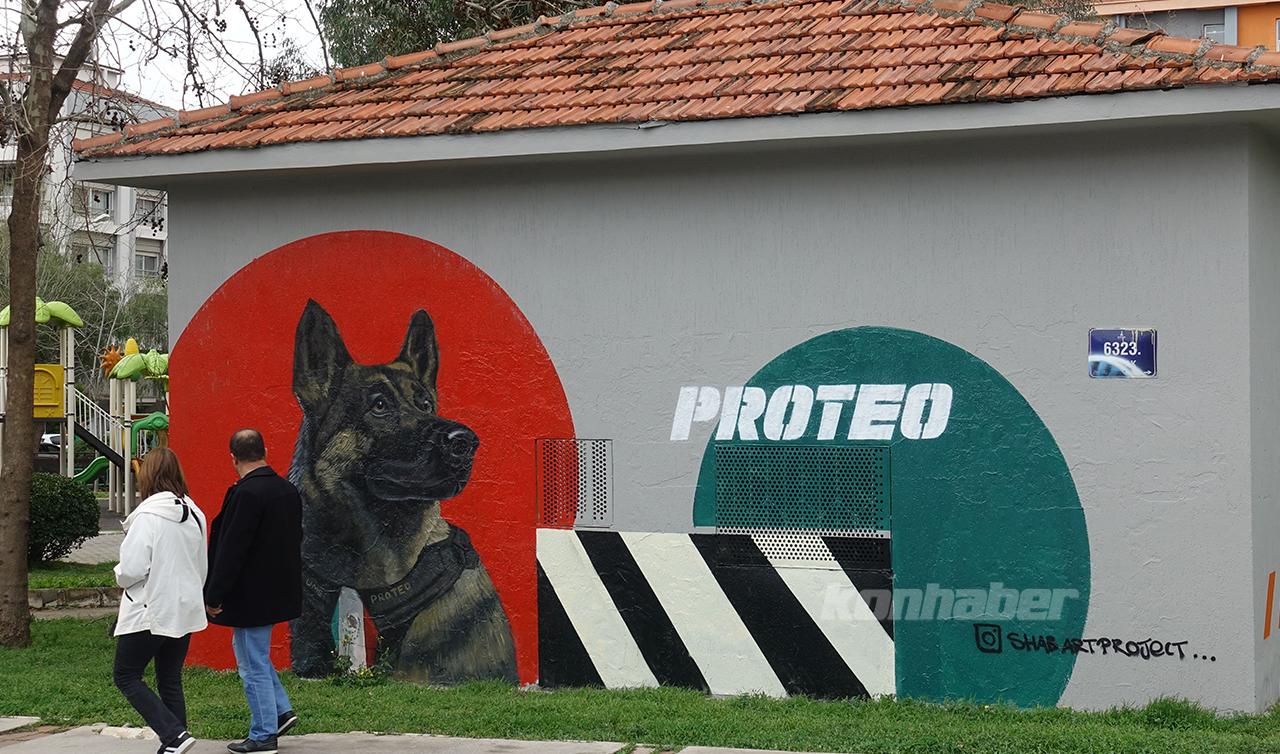 Kahramanmaraş merkezli 6 Şubat'ta meydana gelen depremlerin ardından Meksika'dan Adıyaman'a gelen arama kurtarma ekibinin ölen köpeği Proteo, İzmir'in Karşıyaka ilçesindeki bir trafoya resmedildi.