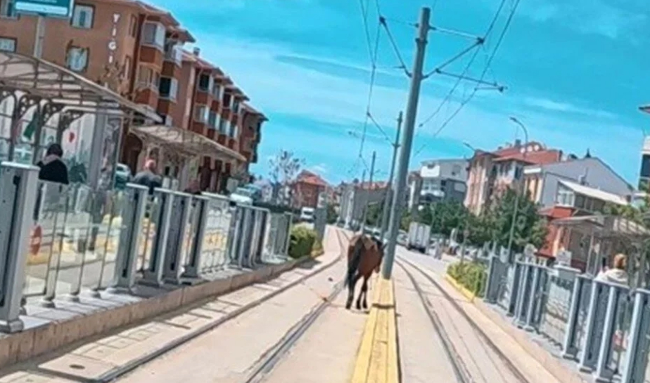 Eskişehir'de 71 Evler Mahallesi'nde bulunan 71 Evler tramvay durağının yanında ilginç bir durum yaşandı. Tramvayın geçtiği rayların üzerinde başıboş bir at fark edildi.