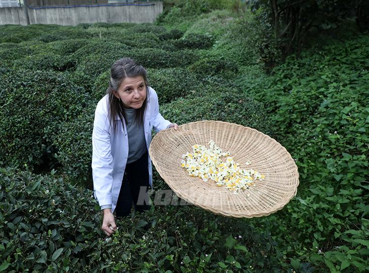 Rize'de Çay Araştırma ve Uygulama Merkezince (ÇAYMER) yürütülen iki yıllık çalışmanın ardından çay bitkisinin açan çiçekleri toplanarak "çiçek çayı" üretildi.
