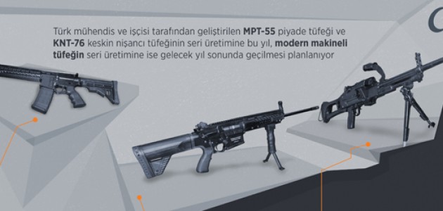 Milli imkanlarla geliştirilen MPT-55 piyade tüfeği ve KNT-76 keskin nişancı tüfeğinin seri üretimine bu yıl, modern makineli tüfeğin seri üretimine ise gelecek yıl sonunda geçilmesi planlanıyor.