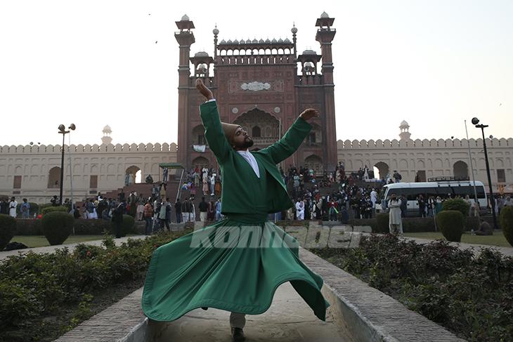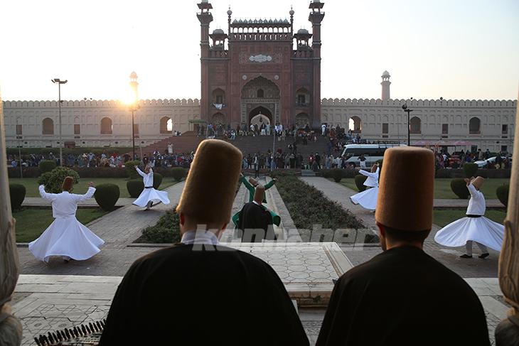 Pakistan-Türkiye diplomatik ilişkilerinin 75’inci yıl dönümü dolayısıyla Pakistan’a gelen Türk semazenler, Lahor’daki tarihi Badşahi Camisi’nin bahçesinde sema icra etti.