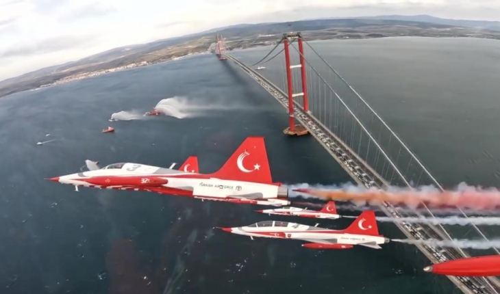 Bakanlığın sosyal medya hesabından yapılan paylaşımda, Türk Yıldızları'nın, 18 Mart Şehitleri Anma Günü ve Çanakkale Deniz Zaferi'nin 107'nci yıl dönümünde hizmete giren 1915 Çanakkale Köprüsü'nün açılış töreninde gösteri uçuşu yaptığı hatırlatıldı.