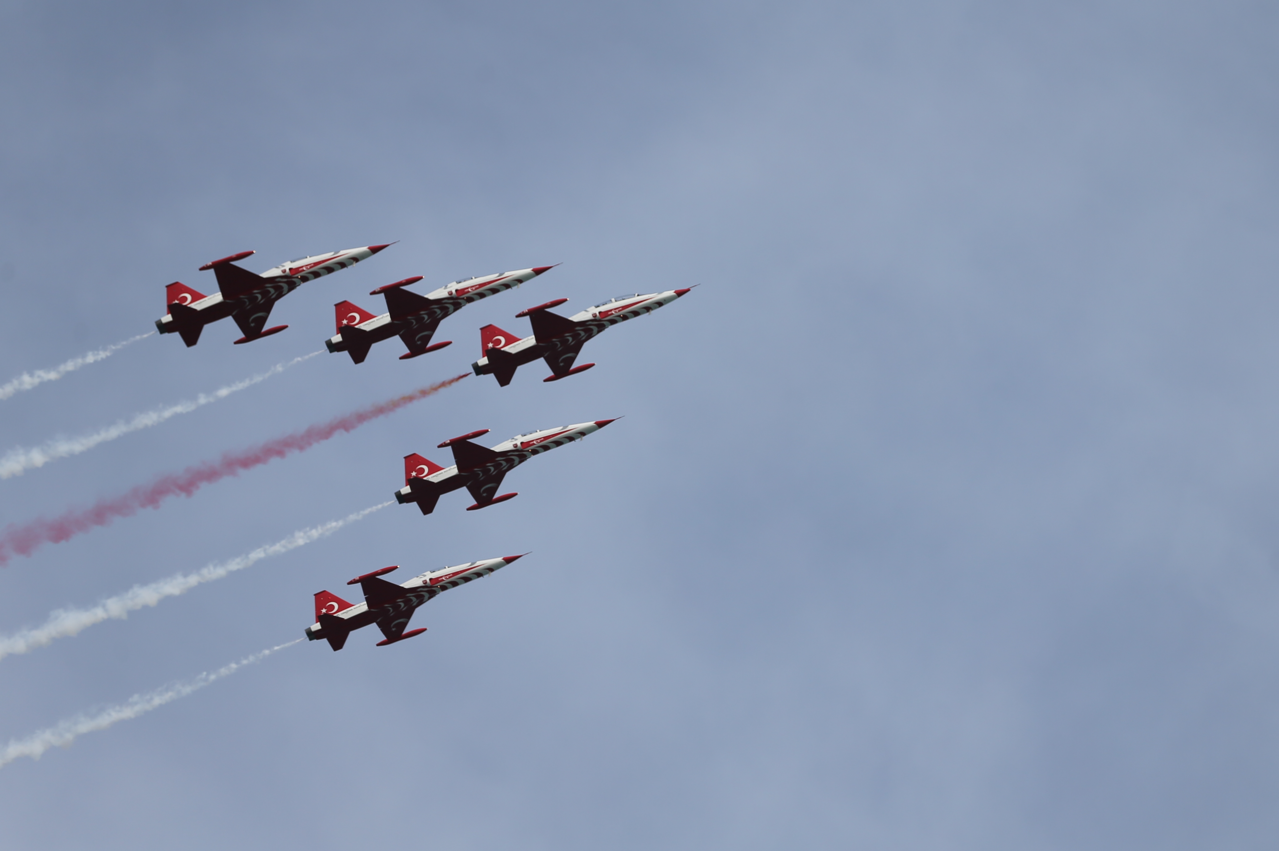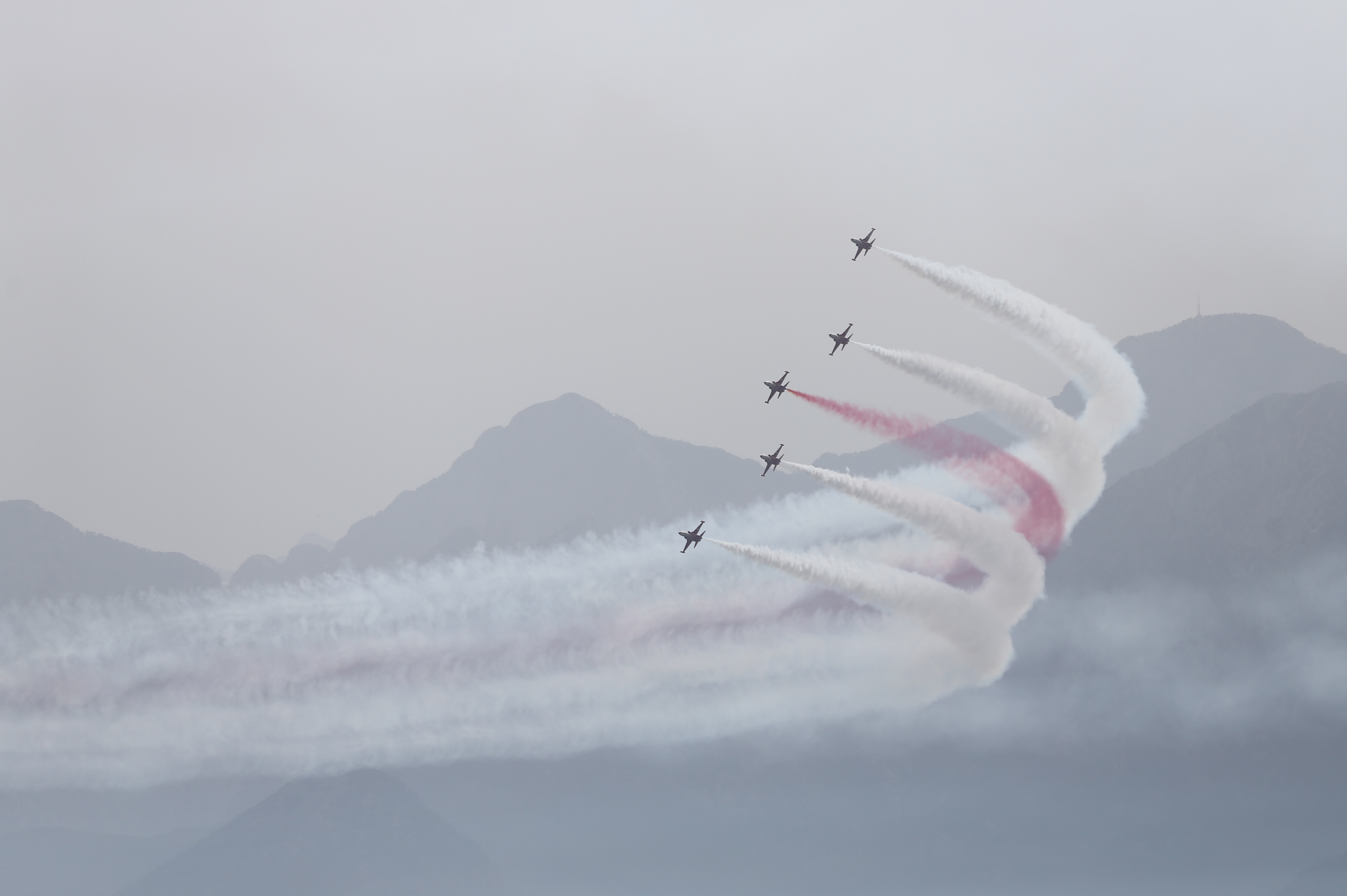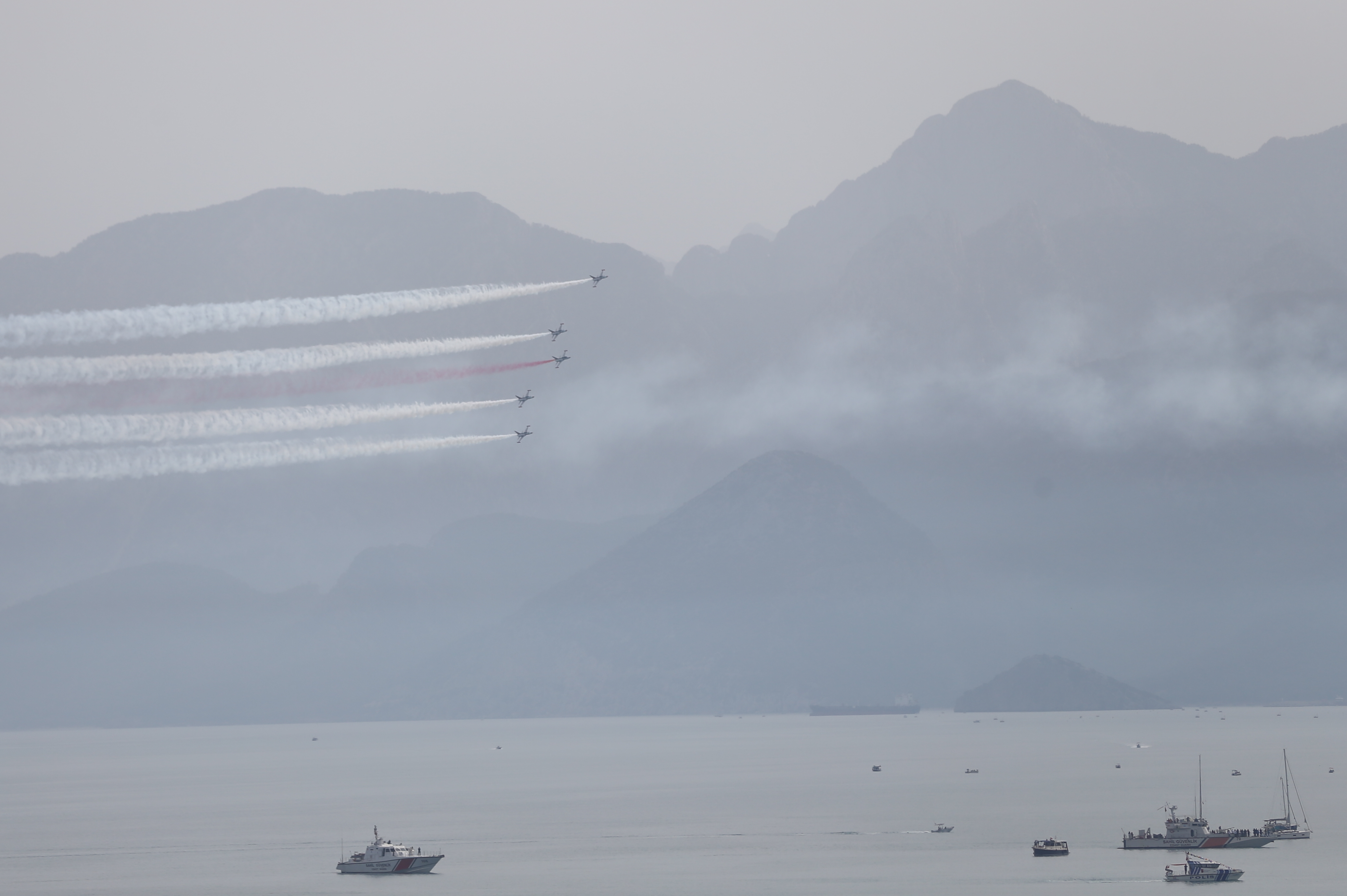 Türk Hava Kuvvetlerinin akrobasi timi Türk Yıldızları 23 Nisan Ulusal Egemenlik ve Çocuk Bayramı etkinlikleri kapsamında Antalya'da gösteri uçuşu yaptı. Türk Yıldızları'nı Konyaaltı sahili, varyant ve Atatürk Parkı'nı dolduran binlerce kişi izledi.