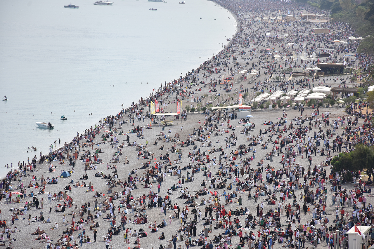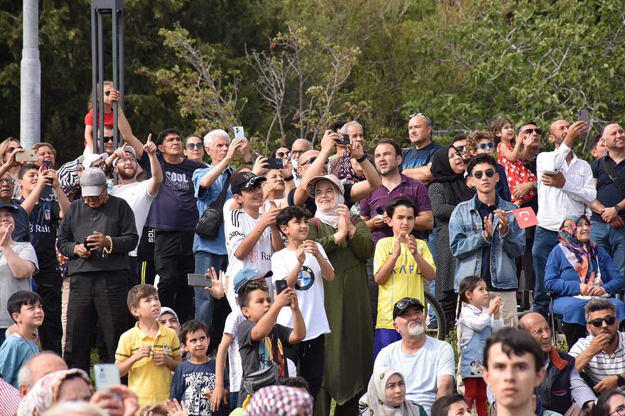 Sahil şeridinin tamamını dolduran binlerce vatandaş, uçakların Akdeniz'in üstünde görünmesiyle büyük heyecan yaşadı.