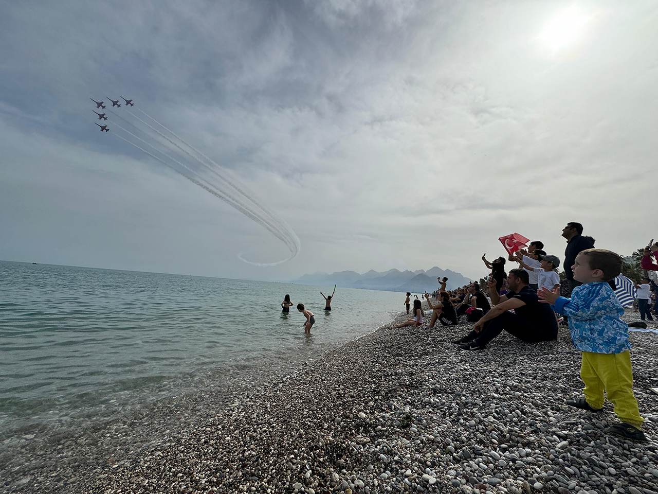 23 Nisan Ulusal Egemenlik ve Çocuk Bayramı etkinlikleri kapsamında, Antalya Havalimanı'ndan havalanan Türk Yıldızları'nı Konyaaltı sahili, varyant ve Atatürk Parkı'nı dolduran binlerce kişi izledi.