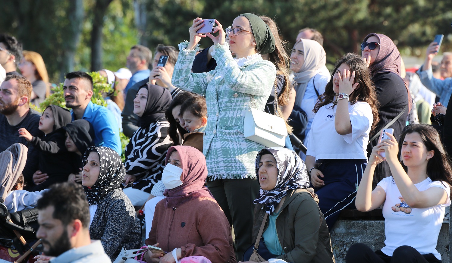 Samsun semalarında yaklaşık 1 saat gösteri uçuşu gerçekleştiren Solo Türk ve Türk Yıldızları’nın gösterilerini kentin farklı bölgelerinde heyecanla takip edenler, cep telefonlarıyla da bu anı ölümsüzleştirdi.