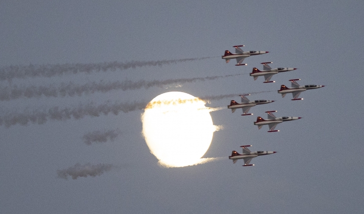 Konya'da düzenlenen 5. İslami Dayanışma Oyunları açılış töreni öncesi Türk Yıldızlarının yaptığı gösteri, gökyüzünde beliren Ay ile güzel görüntü oluşturdu.