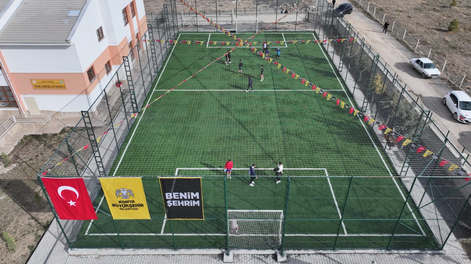 Konya Büyükşehir Belediyesi tarafından Ereğli’de 8 okula kazandırılan açık halı sahaların açılışı yapıldı.