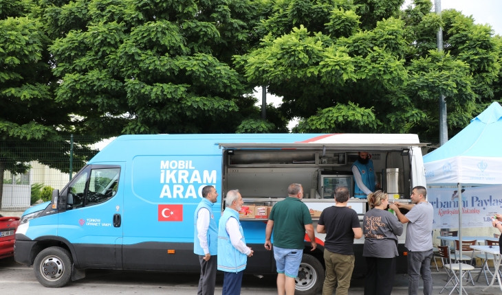 Sınır kapısından geçenler vakfın ikram aracından su, meyve suyu, çay, bisküvi alabiliyor. İsteyen gurbetçiler de aracın yanında kurulan çadırda dinleniyor.