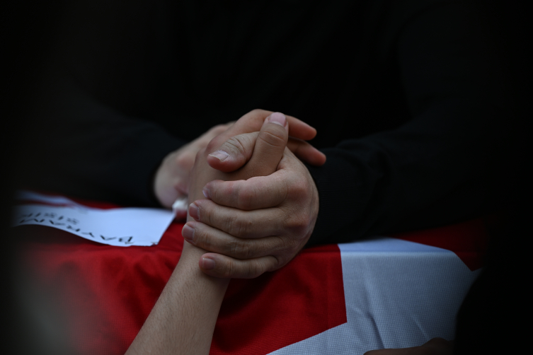 Tören sırasında tabutun başına gelen Kazıcı'nın ailesi ve yakınları gözyaşı döktü.