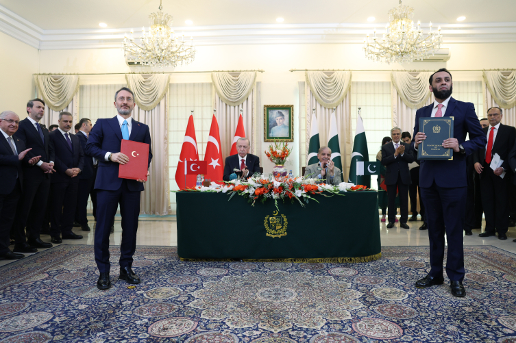 Cumhurbaşkanı Recep Tayyip Erdoğan ile Pakistan Başbakanı Şahbaz Şerif, "Stratejik Ortaklığın Derinleştirilmesi, Çeşitlendirilmesi ve Kurumsallaştırılması" bildirisine imza atarken, iki ülke arasında farklı alanlarda 24 işbirliği anlaşması da imzalandı.