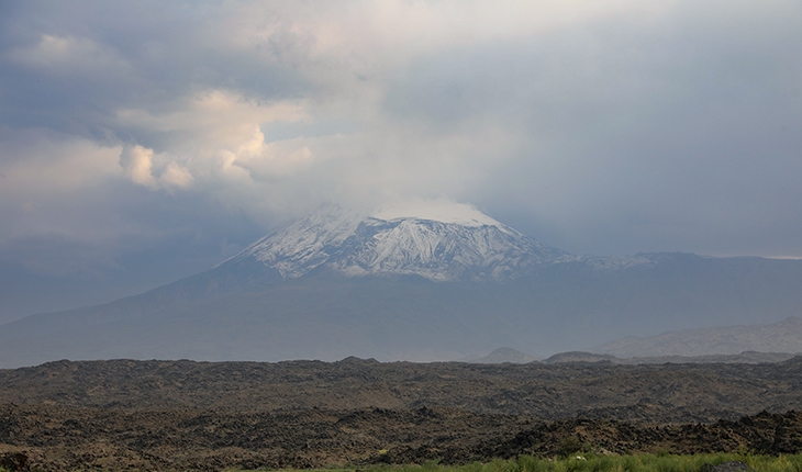 Doğu Anadolu Bölgesi'nde etkisini sürdüren yağmur, yurdun en yüksek noktası olan Ağrı Dağı'nın zirvesinde kara dönüştü.