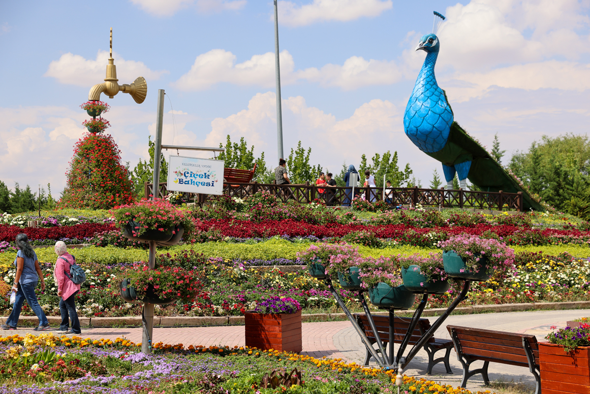 Selçuklu Çiçek Bahçesi 11 bin 500 metrekarelik alanıyla bünyesinde 27 türde ve 65 çeşitte, 395 bin çiçek bulunduruyor.