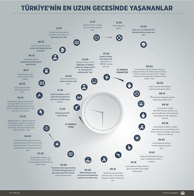 AA muhabirinin derlediği bilgilere göre, Cumhurbaşkanı Erdoğan'a Marmaris'te kaldığı otelde suikast planlayan aralarında Özel Kuvvetler, Sualtı Taarruz (SAT) ve Muharebe Arama Kurtarma (MAK) timlerinin de bulunduğu 37 hain, 15 Temmuz günü Çiğli'deki üste "yurtta sulh konseyi" üyesi darbeci tuğgeneral Gökhan Şahin Sönmezateş'in öncülüğünde bir araya geldi.