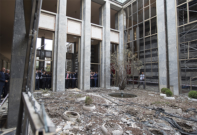 Darbeciler, bina önündeki trafik polislerini silah tehdidiyle etkisiz hale getirip binaya girerek güvenlik görevlilerine "Bomba ihbarı var." şeklinde beyanda bulunarak burayı ele geçirdi.
