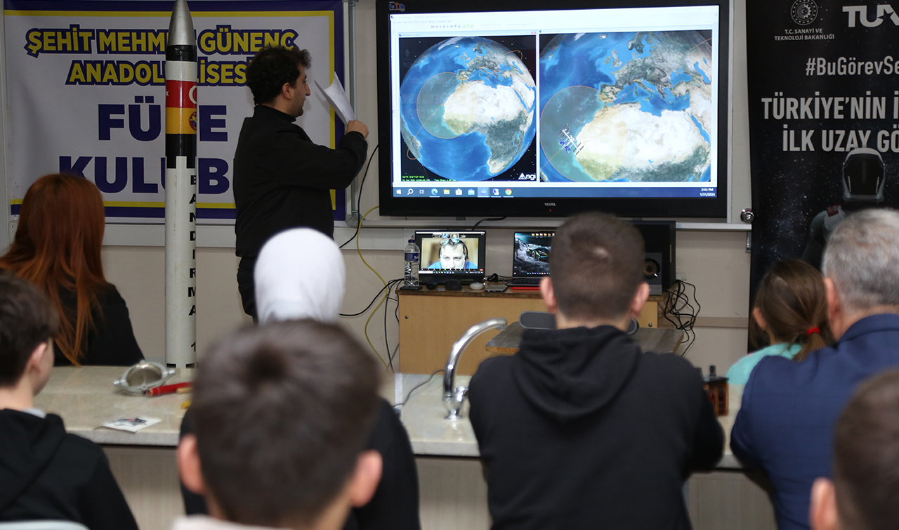 Türkiye'nin ilk astronotu Alper Gezeravcı, Konya ve Balıkesir'deki öğrencilerle telsizle görüştü. Alper Gezeravcı, "Dünyada en çok şu anda sizin sahip olduğunuz lüksü, ailemi, anne-babama yakın olmayı özledim." dedi.