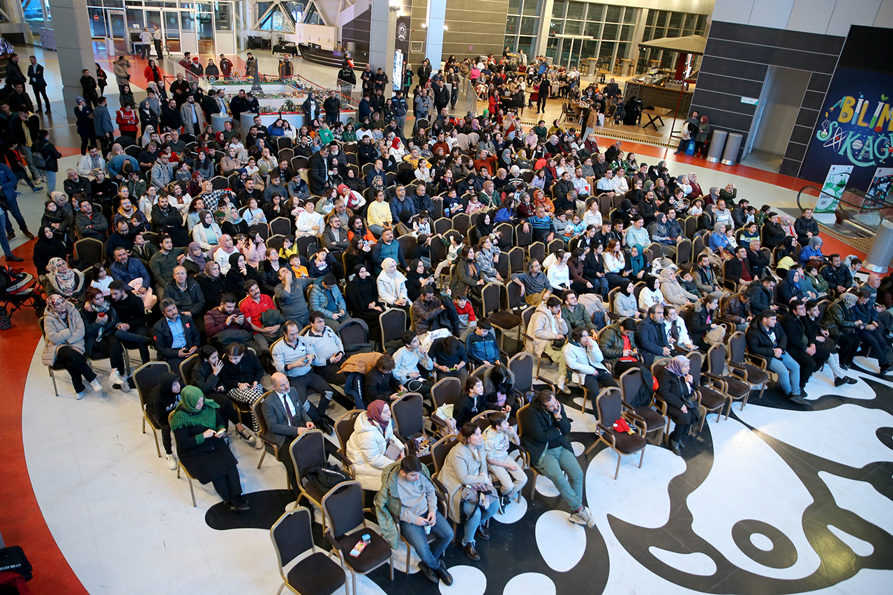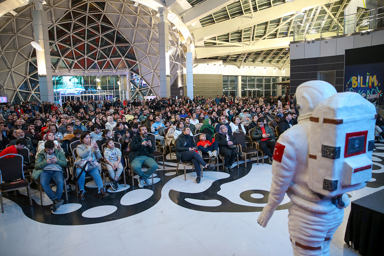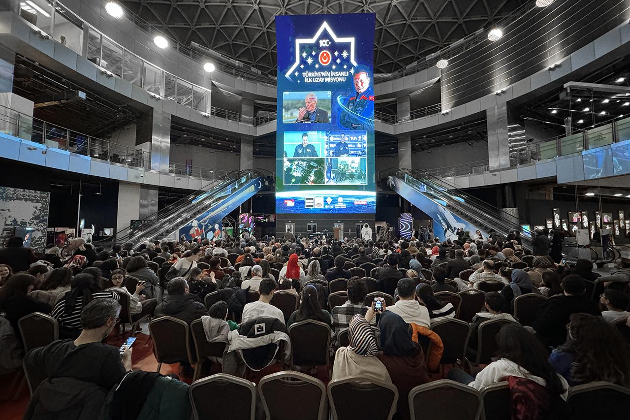 Konya Bilim Merkezi'nde düzenlenen etkinlikte, kurulan dev ekrandan tarihi anları izleyenler, fırlatma töreninin heyecanına ortak oldu.