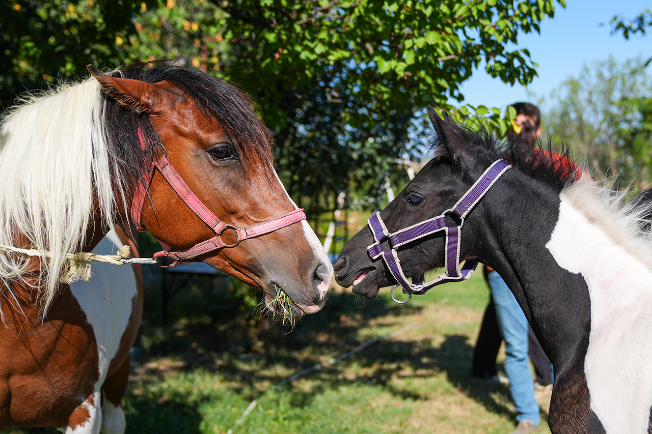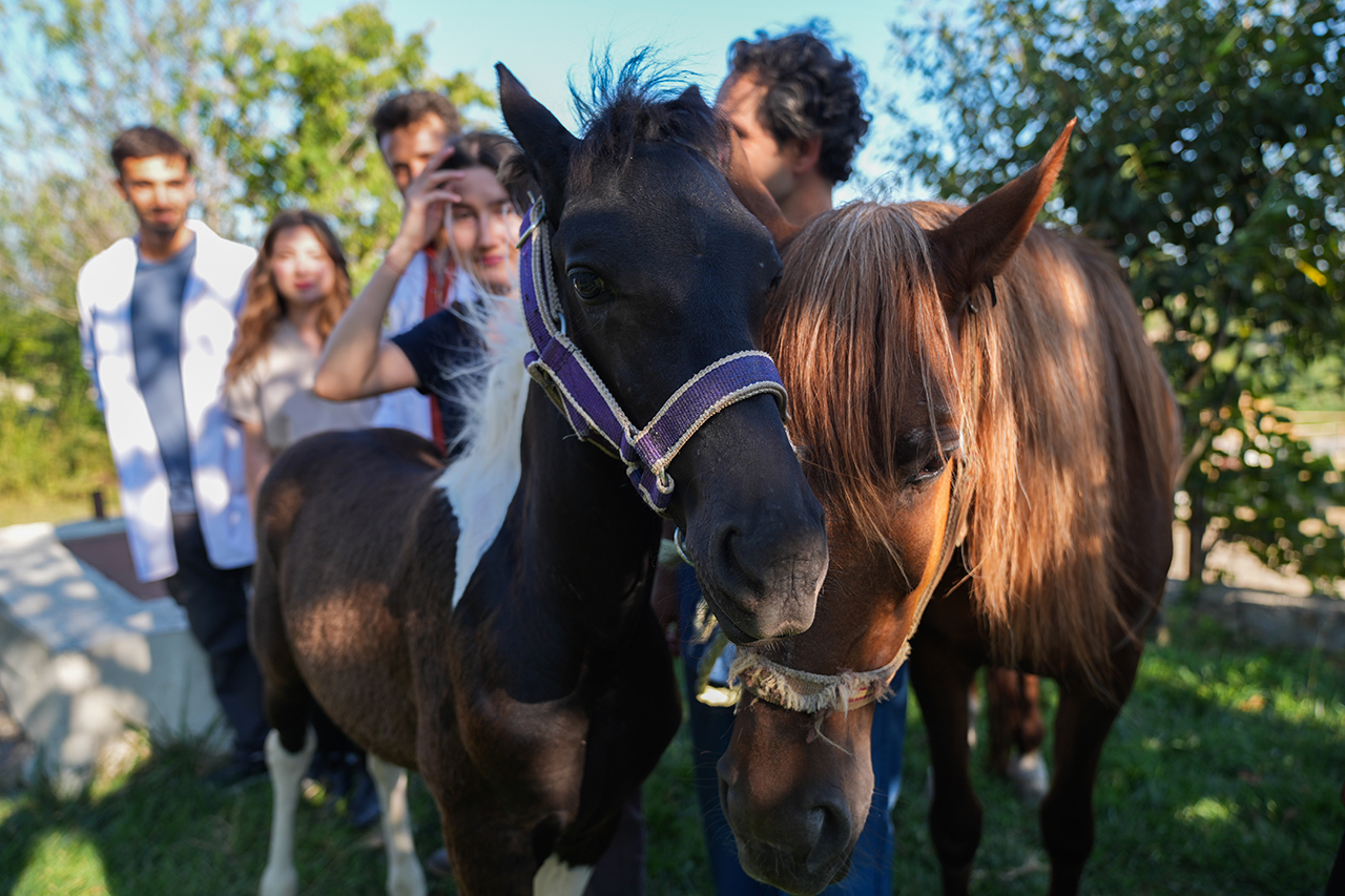 Prof. Gündüz ve ekibi, İstanbul'un Arnavutköy ilçesindeki Boyalık köyünde misafir edilen tay ile ailesini basın mensuplarına tanıttı.