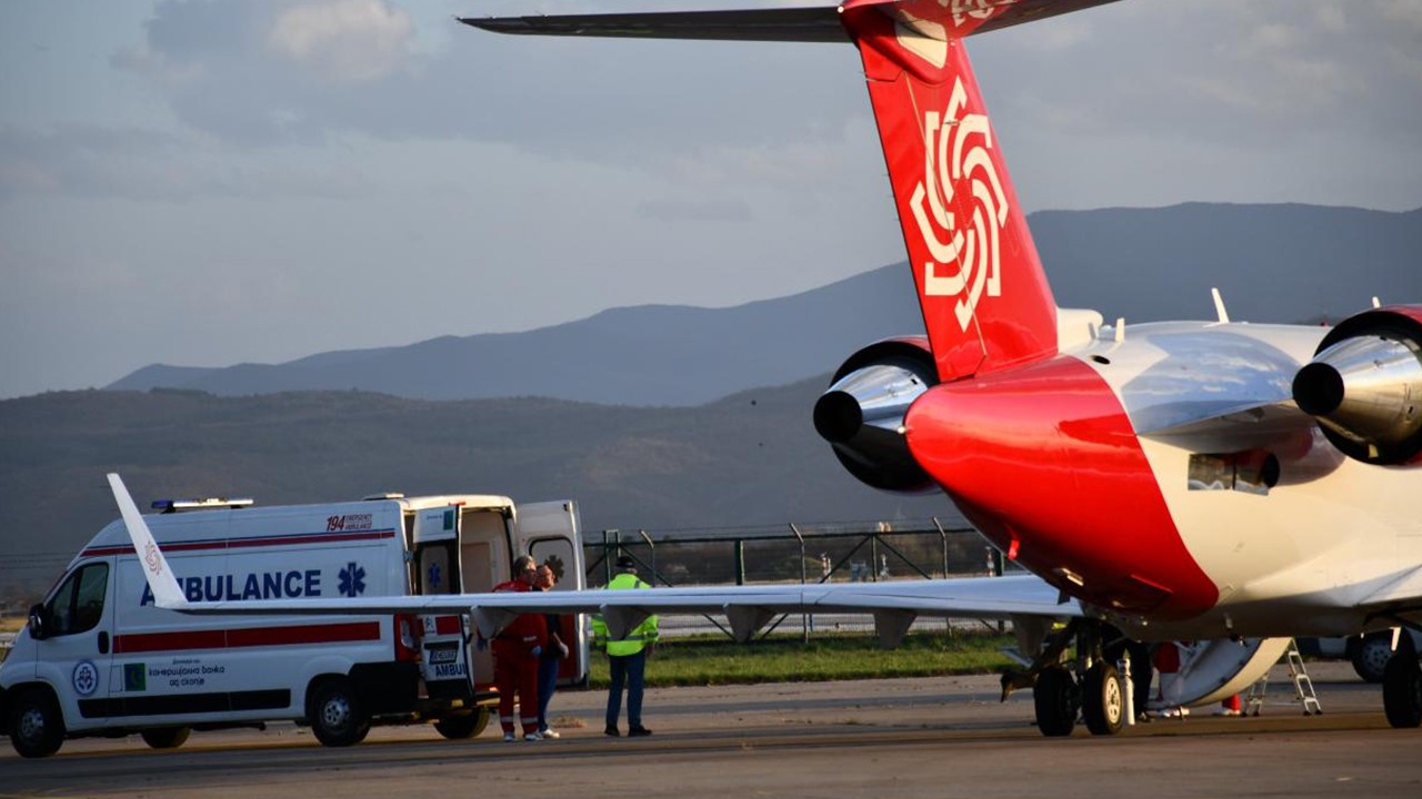 Sağlık Bakanlığınca gönderilen ambulans uçak, yangında yaralanan 3 kişiyi İstanbul'a nakletmek için Uluslararası Üsküp Havalimanı'na iniş yaptı.