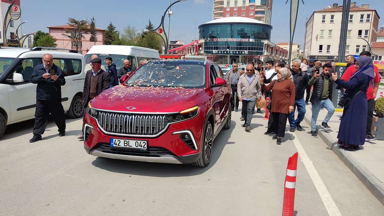 Konya'nın Kulu ilçesinde tanıtılan Türkiye'nin otomobili Togg'a vatandaşlar ilgi gösterdi.