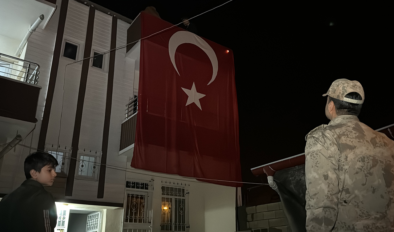 Gaziantep'te şehidin baba evine Türk bayrağı asıldı