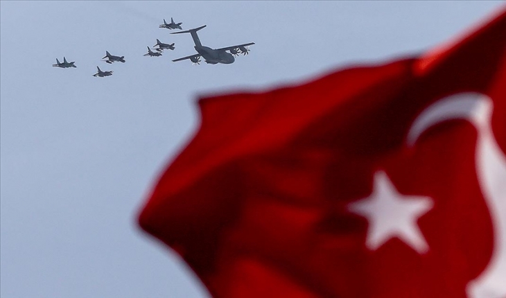 Azerbaycan Hava Kuvvetleri ekiplerinin de MIG-29 uçaklarıyla eşlik ettiği selamlama uçuşunda uçaklar gökyüzünde yan yana uçtu.