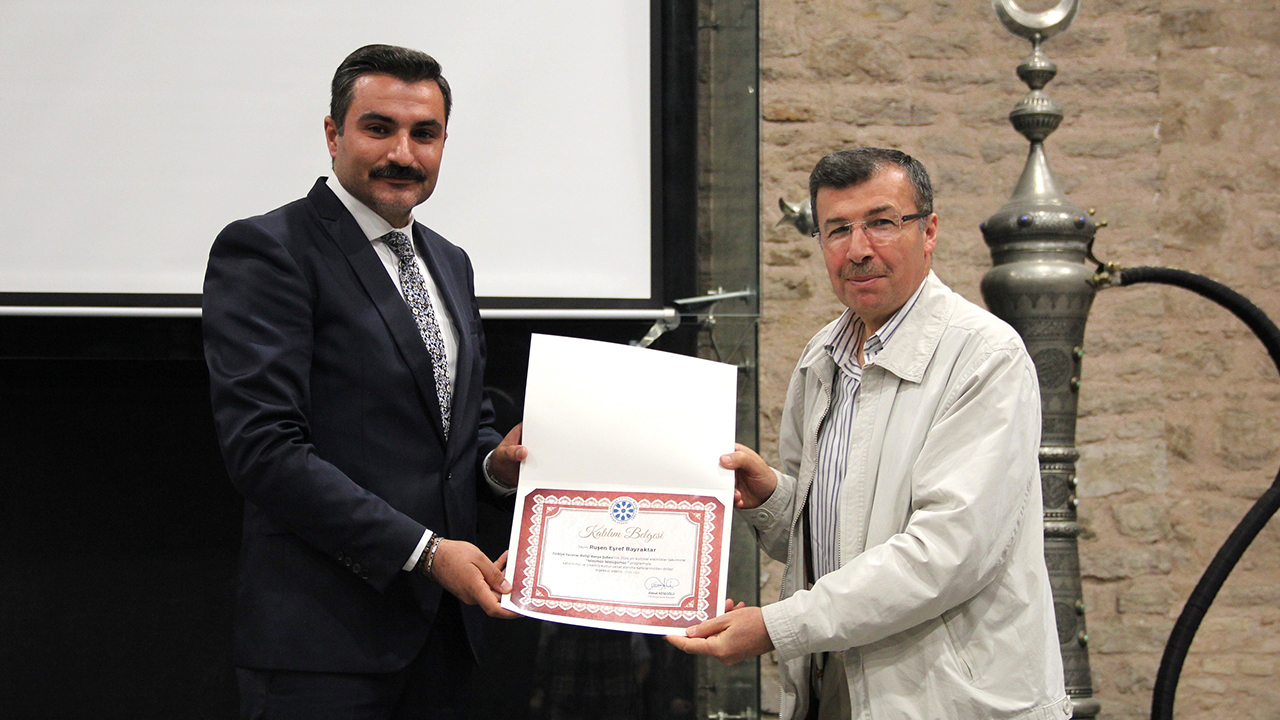 Programın sonunda TYB Konya Şube Başkanı Ahmet Köseoğlu Karatay Belediyesinin TYB Konya Şubesine verdiği destekler için teşekkür ederek D. Mehmet Doğan’ın Büyük Türkçe Sözlük kitabı, Selçuklu çini plaketi ve katılım beratlarını TYB Yönetim Kurul Başkan Yardımcısı Prof. Dr. Ahmet Çaycı eski Odunpazarı Belediye Başkanı Burhan Sakallı, Prof. Dr. Bilal Kuşpınar, ve Veyis Güngör ile birlikte takdim etti.