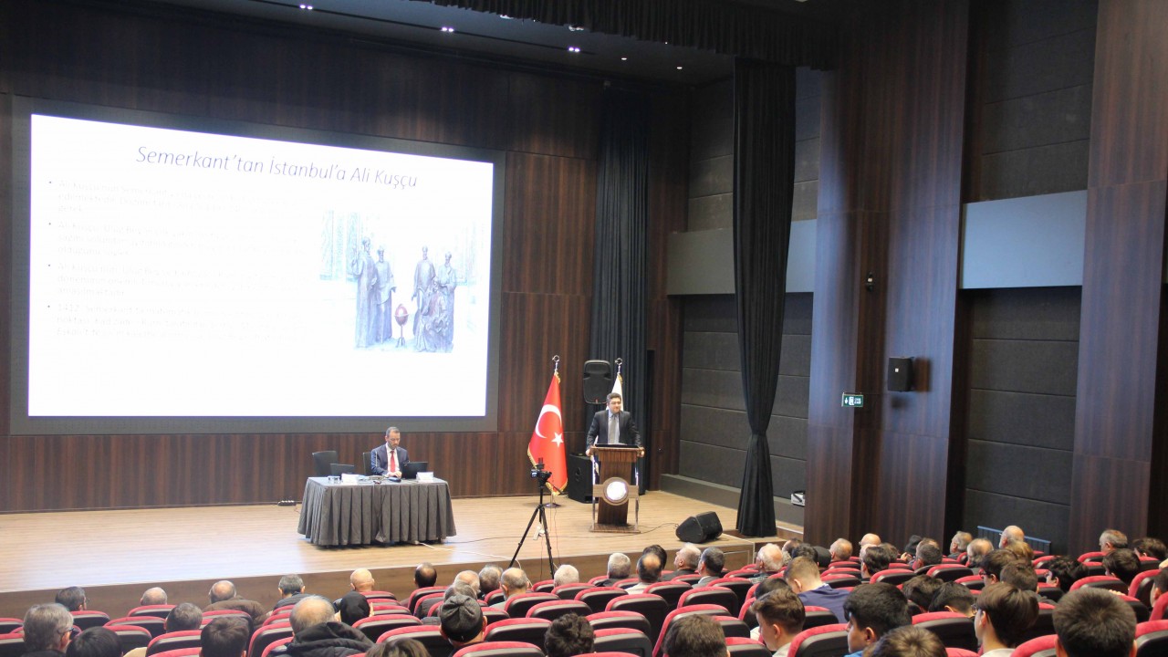 Bu civarlarda Semerkant’a gelen Cemşîd Kâşî oradaki canlı ilmi ortamı babasına yazdığı mektuplarda anlatır. Şehirde binlerce ilim talebesi olduğunu, 500 kadarının da matematik ilimleri okumaya başladığını belirtir. Semerkant’ta pek çok eserin okutulduğunu biliyoruz. Astronomi ilimlerinden örnek verecek olursak, Nasîrüddin Tûsî’nin Tezkire’si ve şerhleri, Kutbüddîn Şîrâzî’nin Tuhfe’si, Çağmînî’nin Mulahhas’ı bilhassa Kadızâde şerhi zikredilebilir. Batlamyus’un Elmacesti’si, Bîrûnî’nin Kânûnu’l-Mes’ûdî’si de ilmi tartışmalara konu olmuştur. Teftazânî ve Cürcânî’nin temsil ettiği birikim de Ali Kuşçu’nun ilmi zemini açısından zikredilmelidir. Ali Kuşçu’nun entelektüel formasyonu açısından önemli role sahip olan diğer kurum Semerkant Rasathanesi’dir. 1420’li yılların ilk yarısında inşasının ve oradaki gözlemlerin yapılmaya başladığı kabul edilebilir. Otuz yılı aşkın bir süre faaliyette kalmıştır. Burada gerçekleştirilen gözlemler sonucu modern öncesi dönemin en önemli astronomi tablolarından birisi olan Zîc-i Uluğ Bey hazırlanmıştır. 1449 yılında Uluğ Bey öldürüldü. Ali Kuşçu’nun, Ebu Said yönetimi devraldıktan sonra 1450’lilerin sonlarında Herat’a gittiğini söyleyebiliriz. Meşhur kelam eseri Şerhu’t-Tecrîd’i yine 1450’lilerin sonlarında bitirdi ve Ebu Said’e ithaf etti. 1470’li yılların başında Timur topraklarından ayrılmaya karar verdi. Önce Tebriz’e uğradı. Ardından 1473 yılında İstanbul’a geldi. Fatih’e Risâletü’l-Muhammediyye adlı eserini sundu. 5 Şaban 879/15 Aralık 1474 yılı Aralık ayında İstanbul’da vefat etti. ” dedi.
