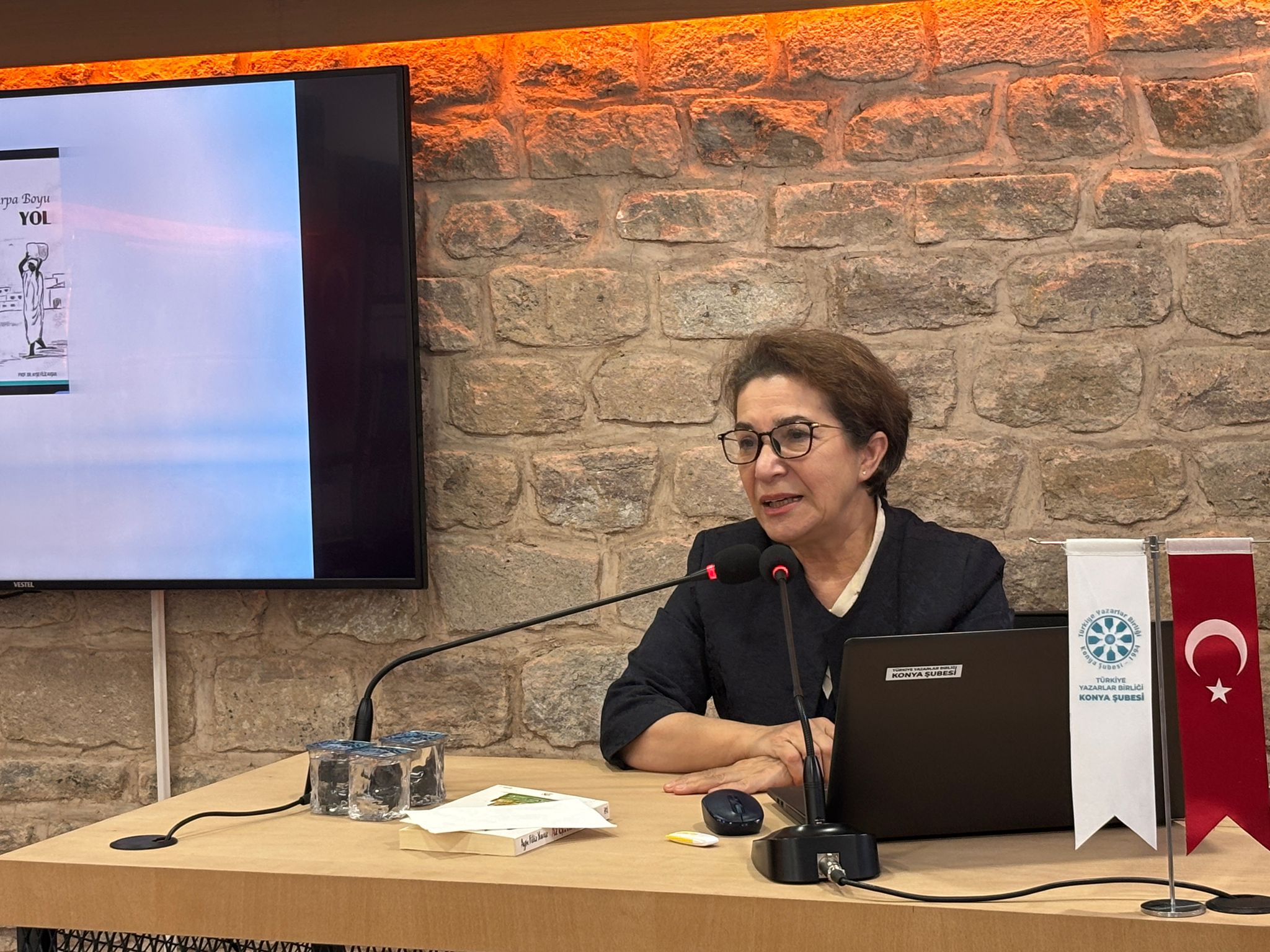 TYB Konya Şubesi D. Mehmet Doğan Kütüphanesi’nde düzenlenen etkinliğin moderatörlüğünü Prof. Dr. Nazmi Zengin üstlenirken, Yazar Prof. Dr. Ayşe Filiz Yavuz konuşmacı olarak katıldı.