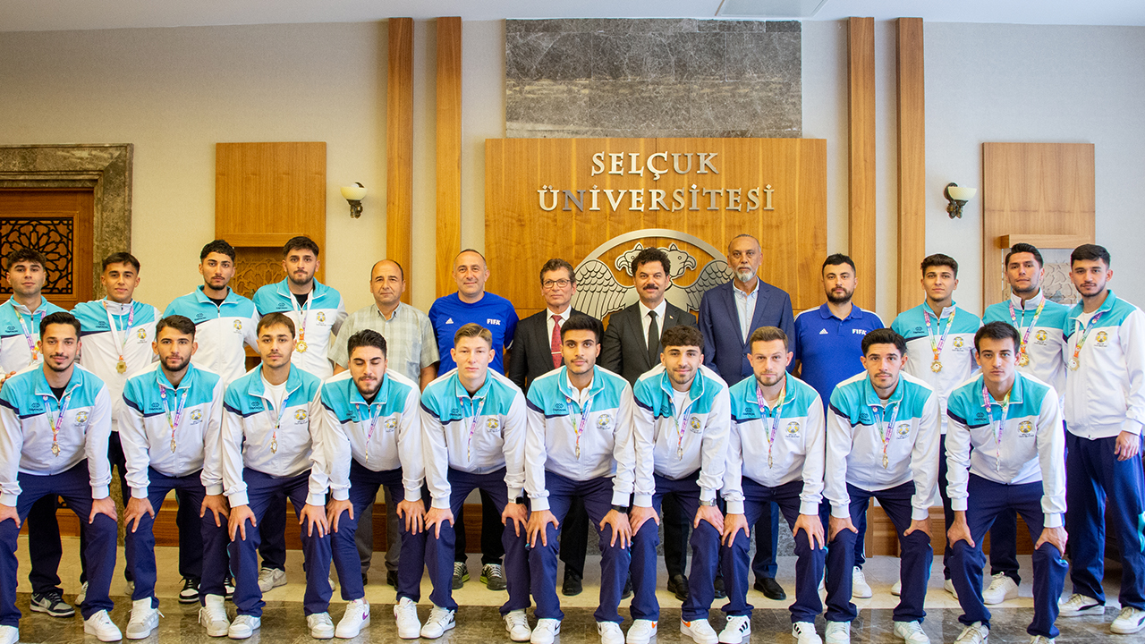 Selçuk Üniversitesi Rektörü Prof. Dr. Hüseyin Yılmaz; Spor Bilimleri Fakültesi Dekanı Prof. Dr. Murat Erdoğdu, antrenörler Dr. Öğr. Üyesi Veysel Böge ve Arş. Gör. Dr. Gökhan Hadi ile Türkiye Üniversiteler Süper Ligi şampiyonu olarak Üniversiteler Arası Avrupa Futbol Şampiyonası’nda Türkiye’yi temsil etme hakkı kazan Selçuk Üniversitesi takımını ağırladı. Ziyarete Rektör Yardımcısı Prof. Dr. Ahmet Ak da eşlik etti.