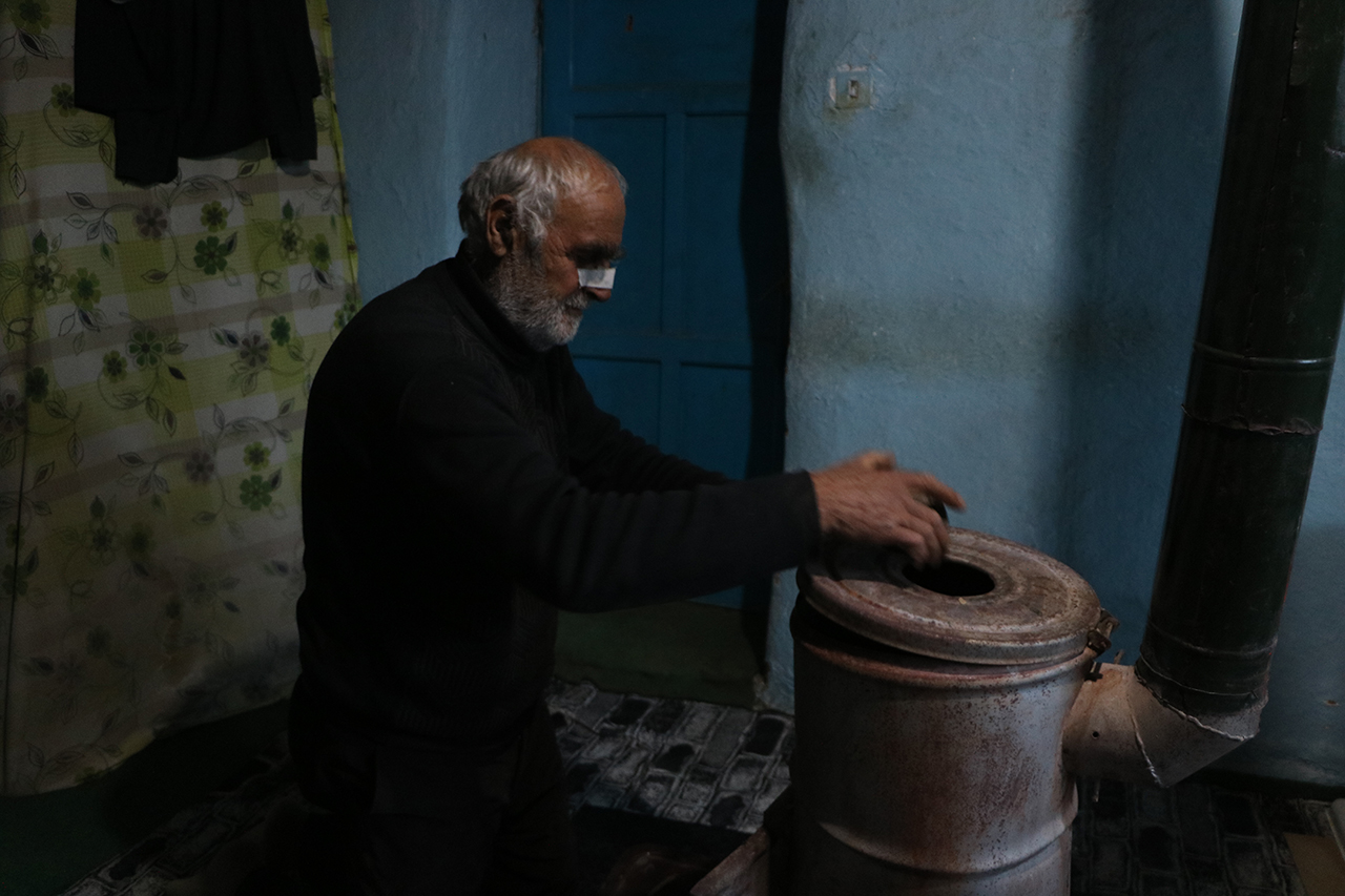 Hakkâri'nin Yüksekova ilçesinde, mutfak, banyo ve tuvaleti olmayan tek odalı evde yalnız yaşayan Kerem Kaçıcı (63), zor şartlar altında hayatını sürdürüyor.