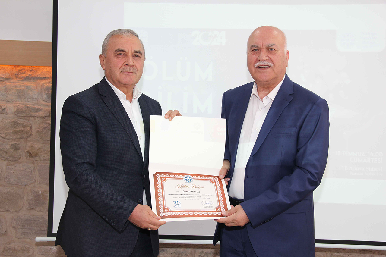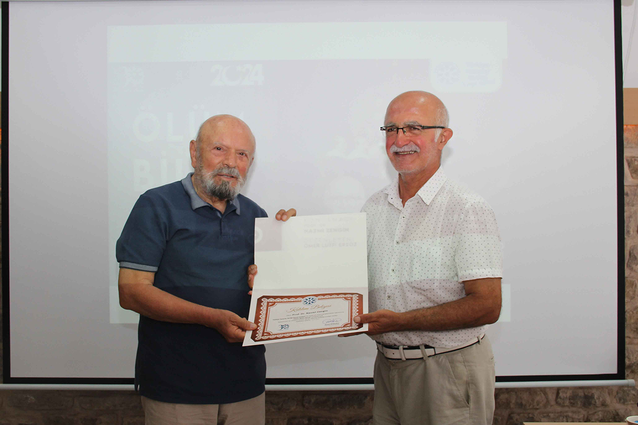 Program sonunda Ömer Lütfi Ersöz ve Prof. Dr. Nazmi Zengin’e Eski Konya Büyükşehir Belediye Başkanı Halil Ürün ve Eski Karaman Belediye Başkanı Kâmil Uğurlu katılım beratlarını takdim etti. (Veli Şengül)