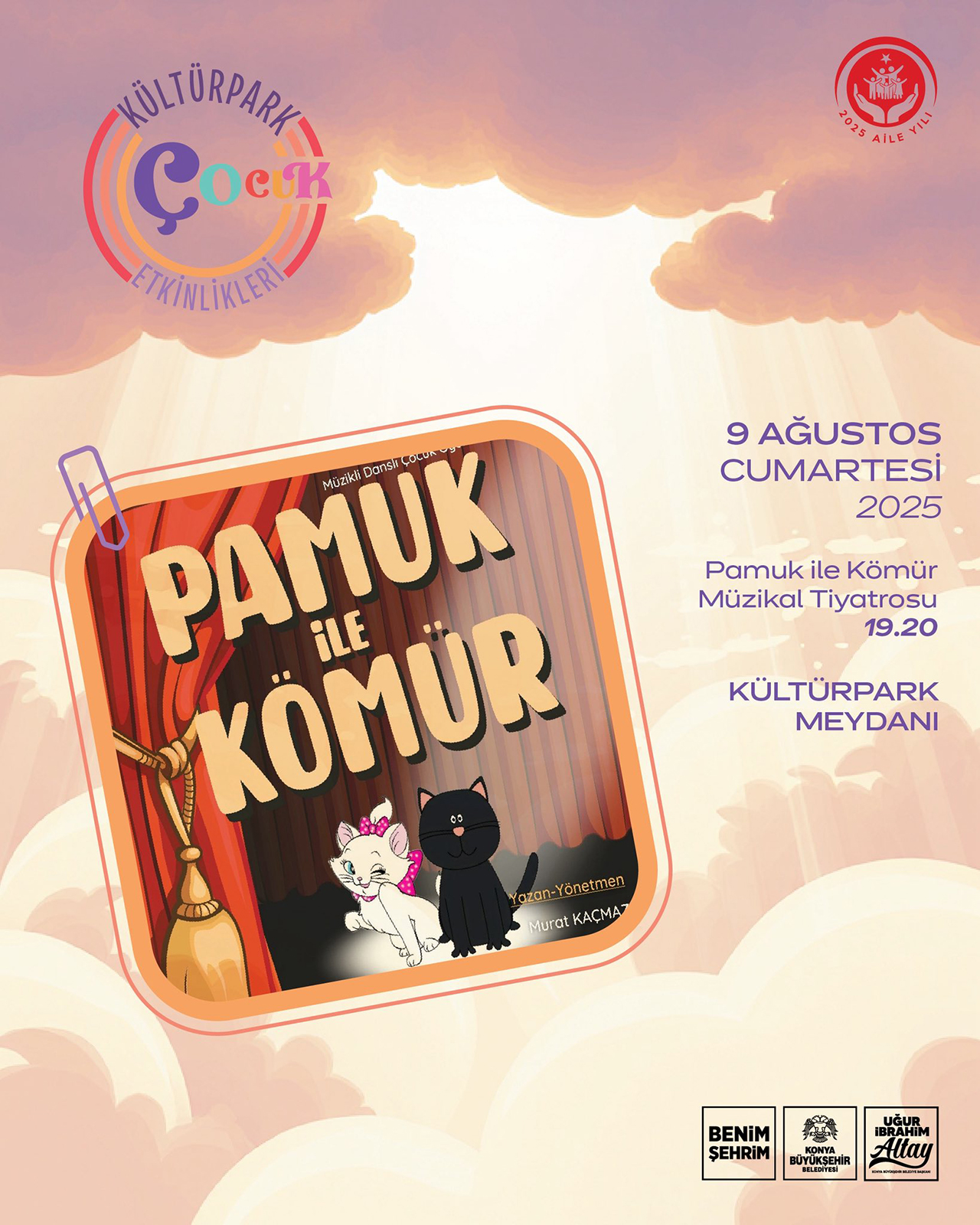 Konya’da yaz akşamları çocuklar için daha eğlenceli hale geliyor. Kültürpark Çocuk Etkinlikleri, Ağustos ve Eylül ayları boyunca her Cumartesi ve Pazar günü saat 18.00–22.00 arasında minikleri ve ailelerini bekliyor.