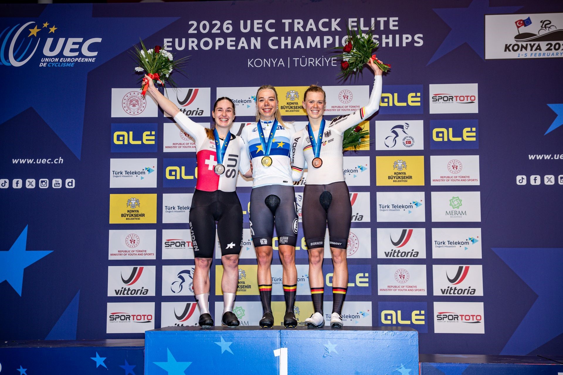 2026 UEC Avrupa Pist Bisikleti Şampiyonası’nın akşam seansında gerçekleştirilen final yarışlarının ardından ilk madalyalar ve Avrupa şampiyonu formaları sahiplerini buldu. Madalya töreninde ödüller; Avrupa Bisiklet Birliği Başkanı Enrico Della Casa, Avrupa Bisiklet Birliği Asbaşkanı Raivo Rand, Konya Büyükşehir Belediye Başkanı Uğur İbrahim Altay, Türkiye Bisiklet Federasyonu ve Balkan Bisiklet Birliği Başkanı Emin Müftüoğlu, Türkiye Bisiklet Federasyonu Başkan Vekili Fikret Hayali ve Türkiye Bisiklet Federasyonu Asbaşkanı Metin Cengiz tarafından takdim edildi.