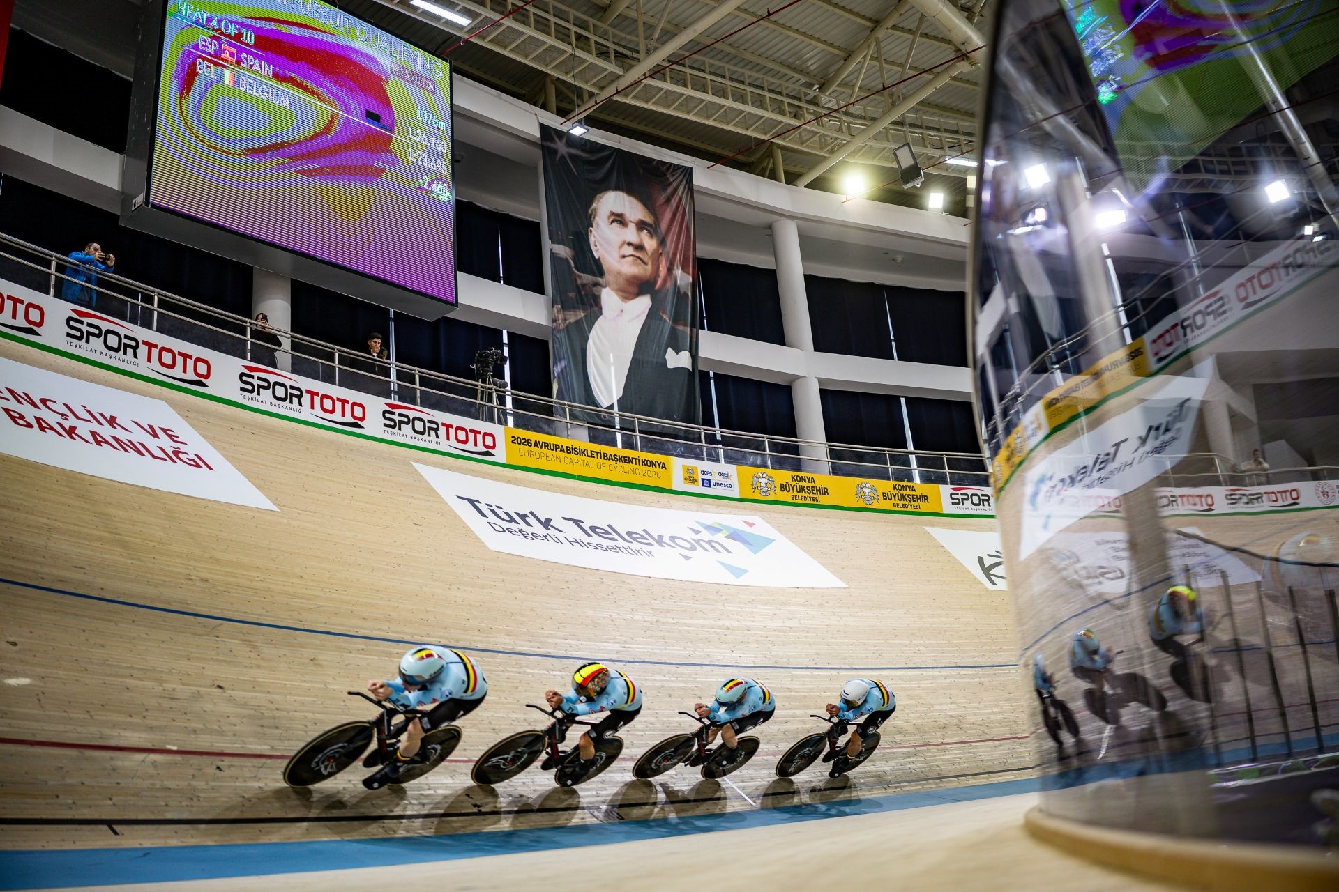 Konya’da 1-5 Şubat tarihleri arasında Avrupa Bisiklet Birliği ile birlikte Gençlik ve Spor Bakanlığı, Türkiye Bisiklet Federasyonu ile Konya Gençlik ve Spor İl Müdürlüğü koordinasyonunda, Konya Valiliği ve Konya Büyükşehir Belediyesi'nin destekleriyle Spor Toto ve Türk Telekom ana sponsorluğunda düzenlenen UEC 2026 Avrupa Pist Bisikleti Şampiyonası’nda ilk günün akşam seansı yarışları tamamlandı.