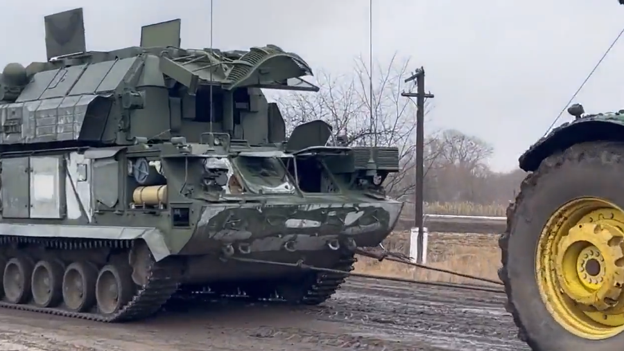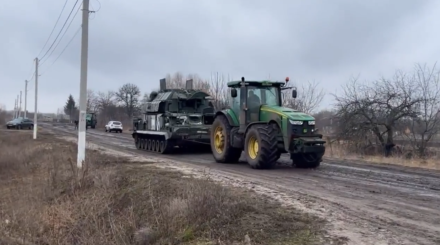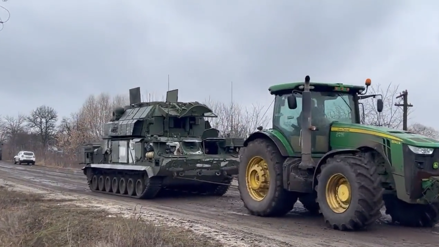 Yayınlanan son videoda Ukraynalı bir çiftçinin, bir Rus Tor-M2 Hava Savunma Sistemi tankını traktörüne bağlayarak götürdüğü anlar yer aldı.