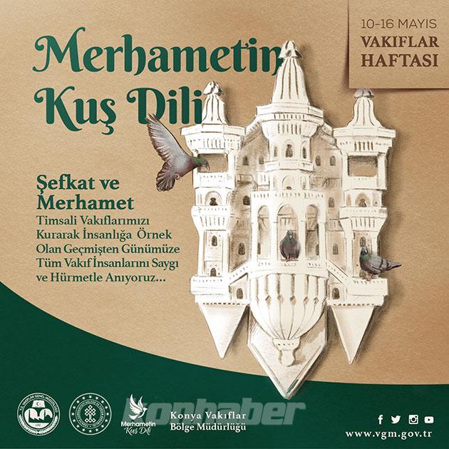 Konya Vakıflar Bölge Müdürü Nurullah Osmanlı, “10-16 Mayıs 2021 tarihleri arasında gerçekleştirilecek olan ‘Vakıflar Haftası’ nedeniyle bir açıklama yaptı. Geçen yıl olduğu gibi Vakıflar Haftası’nın bu sene de sanal ortamda kutlanacağını belirten Osmanlı, 'Vakıflar Haftamızı pandemiden dolayı geçen yıl olduğu gibi bu yıl da sosyal medya ve iletişim araçları vasıtasıyla kutlayacağız.
