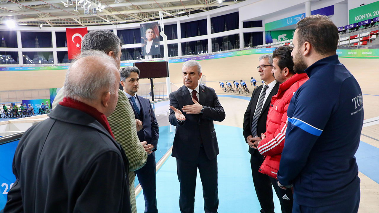 Konya Valisi İbrahim Akın, Türkiye'nin ilk kapalı olimpik veledromu olan Konya Olimpik Veledromu'nu ziyaret ederek incelemelerde bulundu.